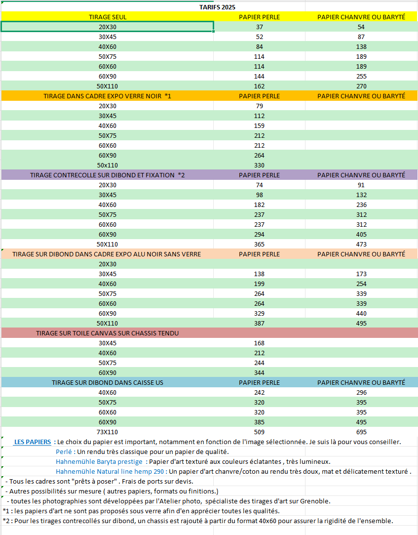Toutes mes photographies sont disponibles en tirages sur papier d’art effectués par un artisan grenoblois : https://atelier-photo38.fr/wp/